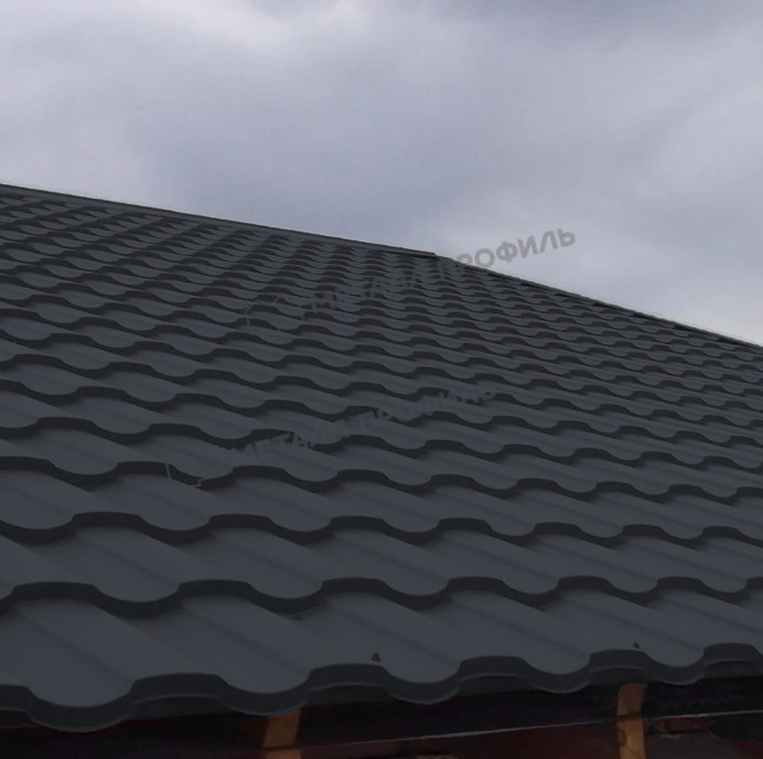 Металлочерепица с профилем Монтекристо-S толщиной 0,5 мм и покрытием VikingMP® E в цвете RAL 7024 Серый графит представляет собой надежный кровельный материал от компании Металл-Профиль. Это сочетание эстетики классической черепицы и современных технологий обеспечивает долговечность и привлекательный внешний вид для крыш жилых и коммерческих зданий.