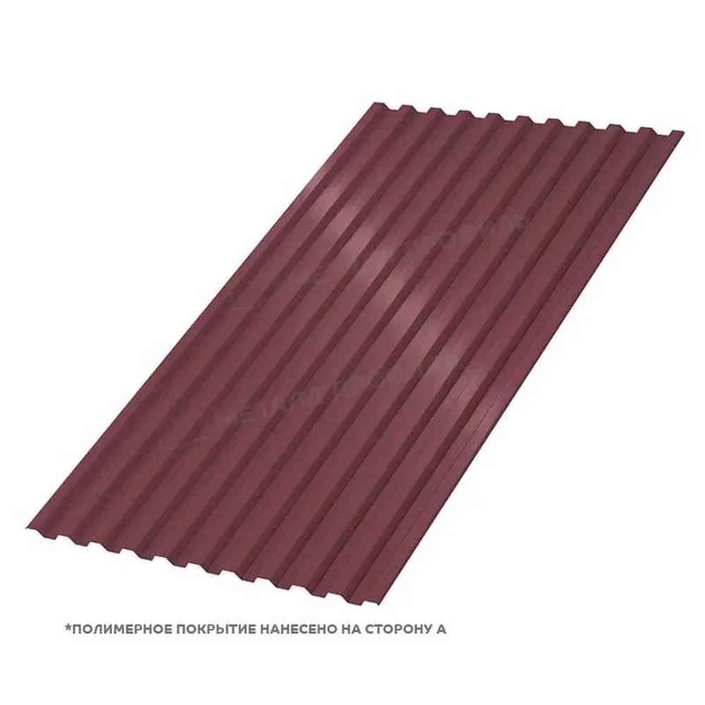 Профлист С-21 с покрытием VikingMP® E в цвете RAL 3005 Красное вино представляет собой надежный материал для кровли и фасадов. Толщиной 0,5 мм, он сочетает прочность и эстетику, идеален для строительства и ремонта.